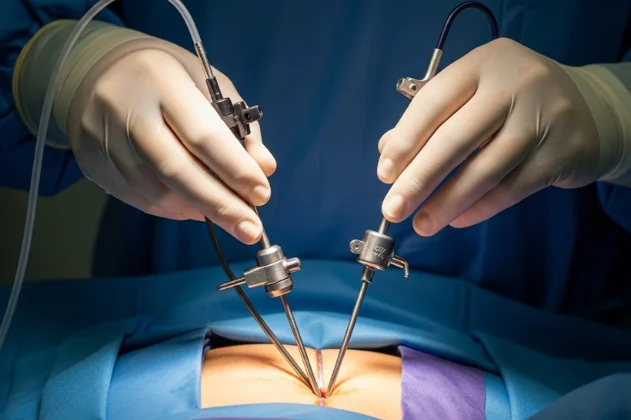 Abordagem minimamente invasiva com pequenas incisões e câmera de alta definição,